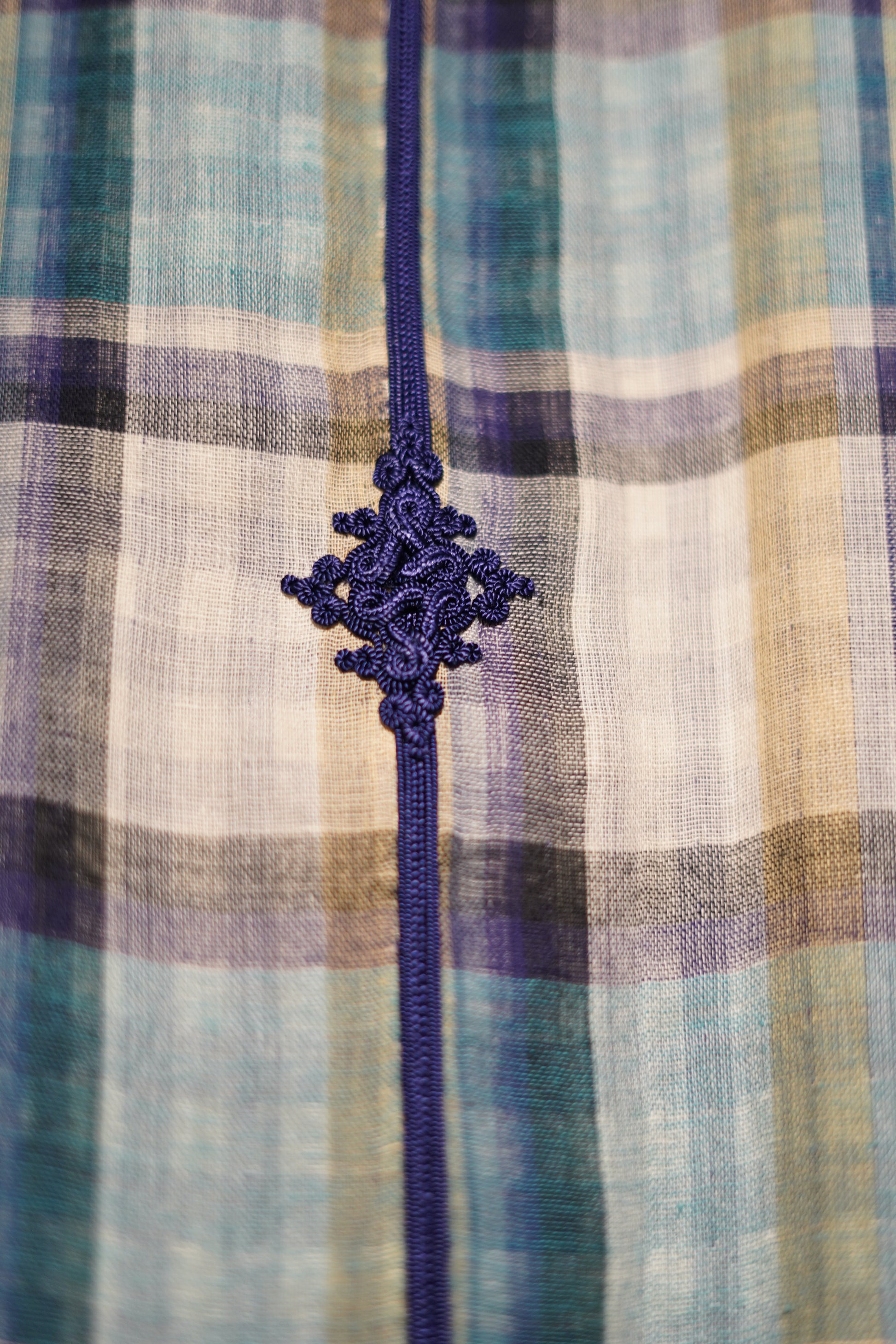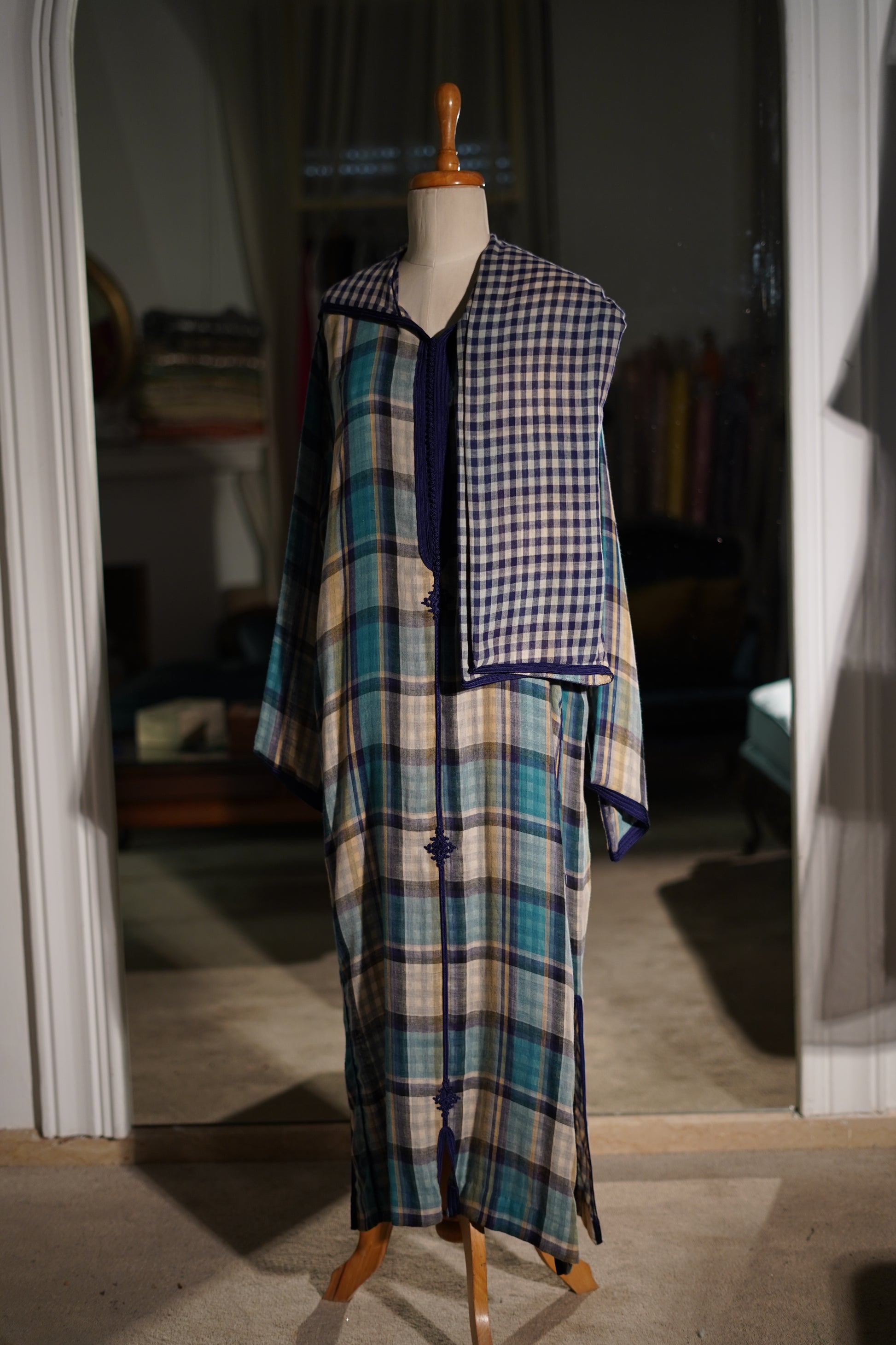 FR🇫🇷: Une djellaba fraîche et lumineuse aux carreaux bleu méditerranéen et crème, accompagné de son pantalon à carreaux légers. Le tissu léger et le motif joyeux en font le choix idéal pour les soirées ramadanesques décontractées.