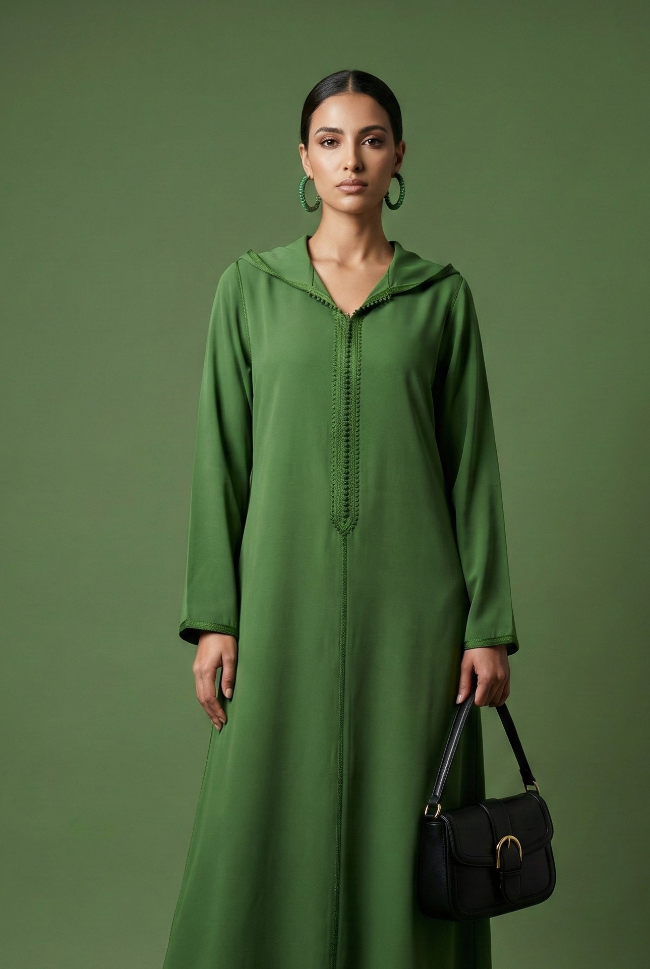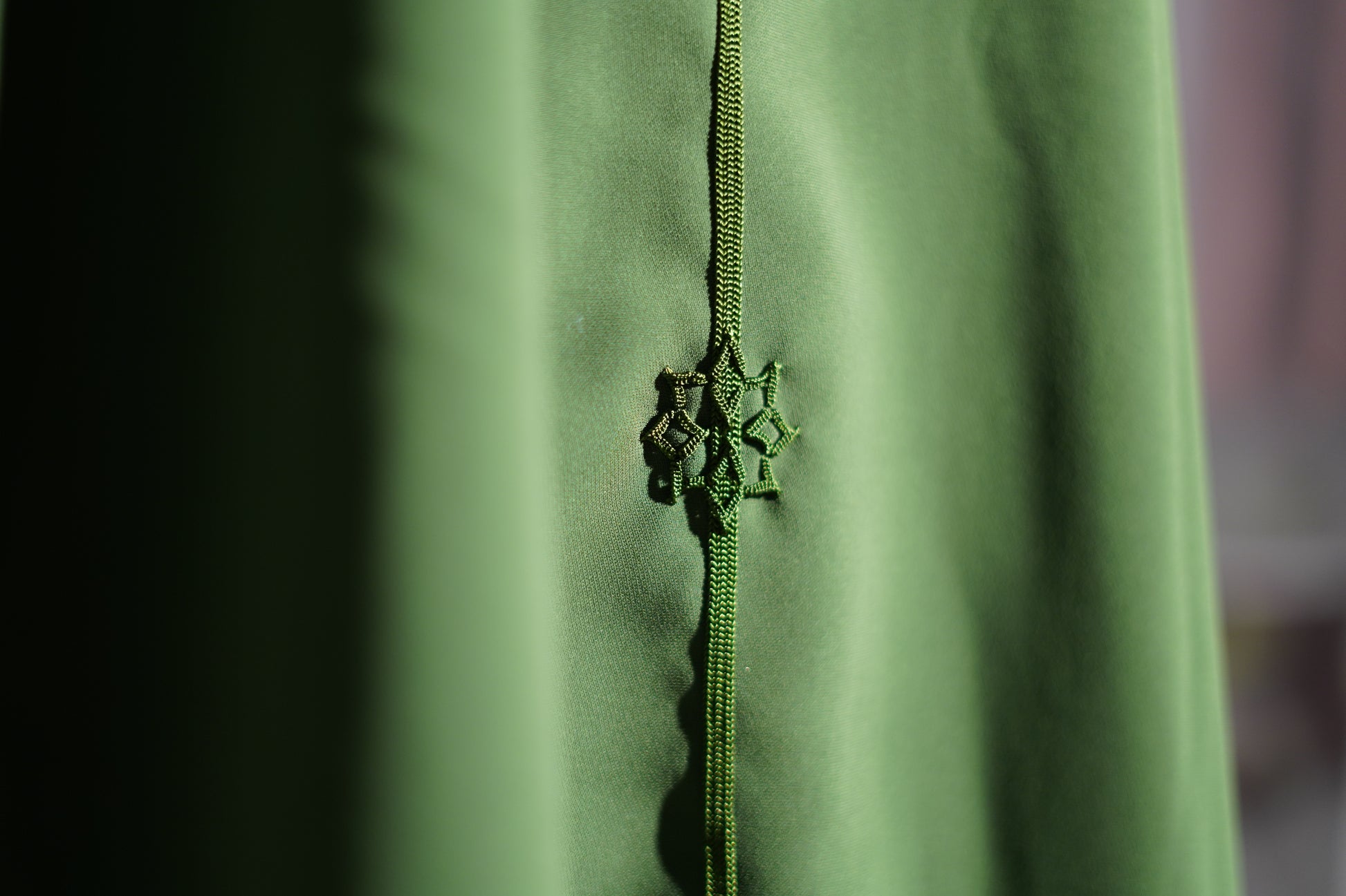EN🇬🇧: A fresh pistachio green jellaba with a clean, minimalist silhouette and subtle braided sfifa trim along the front. The solid color and flowing lines create effortless elegance, perfect for everyday Ramadan wear with a luxurious touch.
